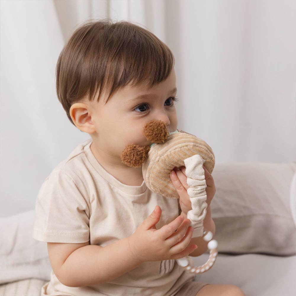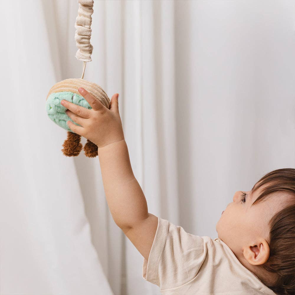 Keep your little one entertained when out and about with our gorgeous Mini Market Brunch stroller toys. Our Boba Tea & Donut is made from polyester plush and features a soft rattle to enhance the play experience. They attach easily to any stroller/pram hood, bumper bar, or even baby's play-gym or car seat. Features: - Made from 100% Polyester - Attaches to prams, strollers, play gyms and car seats - BPA free stroller ring attachment - Toy tested to AUS/NZ toy standards Dimensions : 15cm x 30cm Materials: Toy: 100% polyester