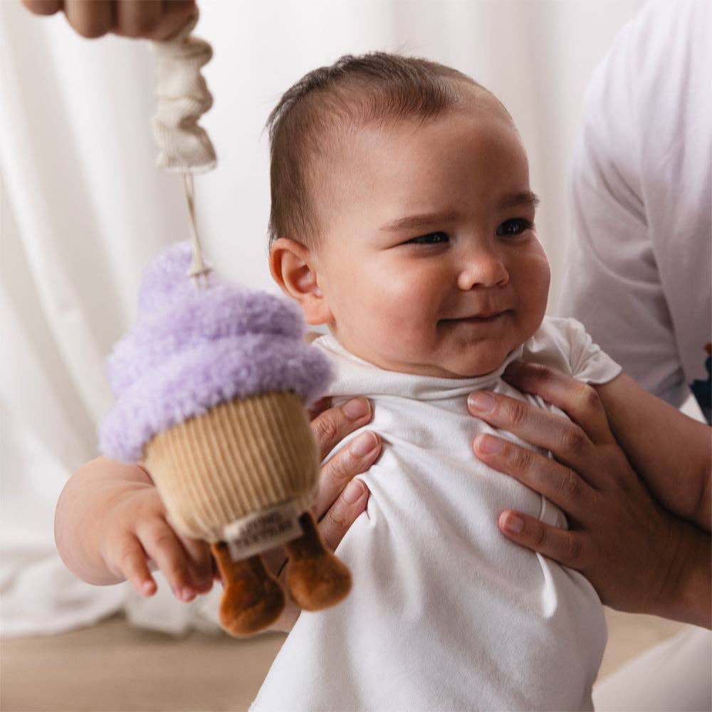 Keep your little one entertained when out and about with our gorgeous Mini Market Brunch stroller toys. Our Ice Cream & Cupcake is made from polyester plush and features a soft rattle to enhance the play experience. They attach easily to any stroller/pram hood, bumper bar, or even baby's play-gym or car seat. Features: - Made from 100% Polyester - Attaches to prams, strollers, play gyms and car seats - BPA free stroller ring attachment - Toy tested to AUS/NZ toy standards Dimensions : 15cm x 30cm Materials: Toy: 100% polyester