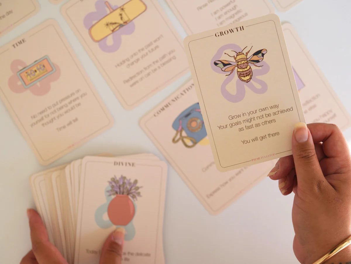 We have created 40 hand drawn and thoughtfully written affirmation cards. Each card represents something different for your interpretation.