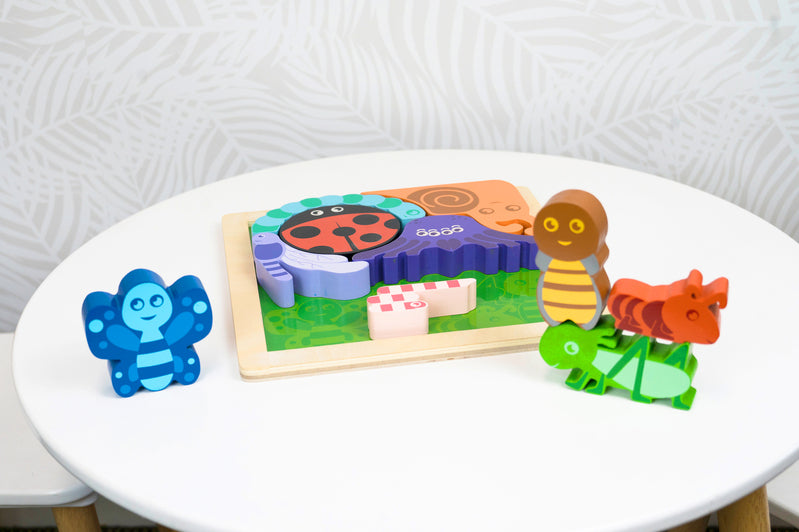 Little ones will love solving the chunky wood bug-themed puzzle from Kiddie Connect. With bright, playful colours and easy-to-grasp pieces, this engaging puzzle is perfect for little hands. Featuring a collection of cute and friendly insects, it's a fun and educational way to develop hand-eye coordination, problem-solving skills and shape recognition.