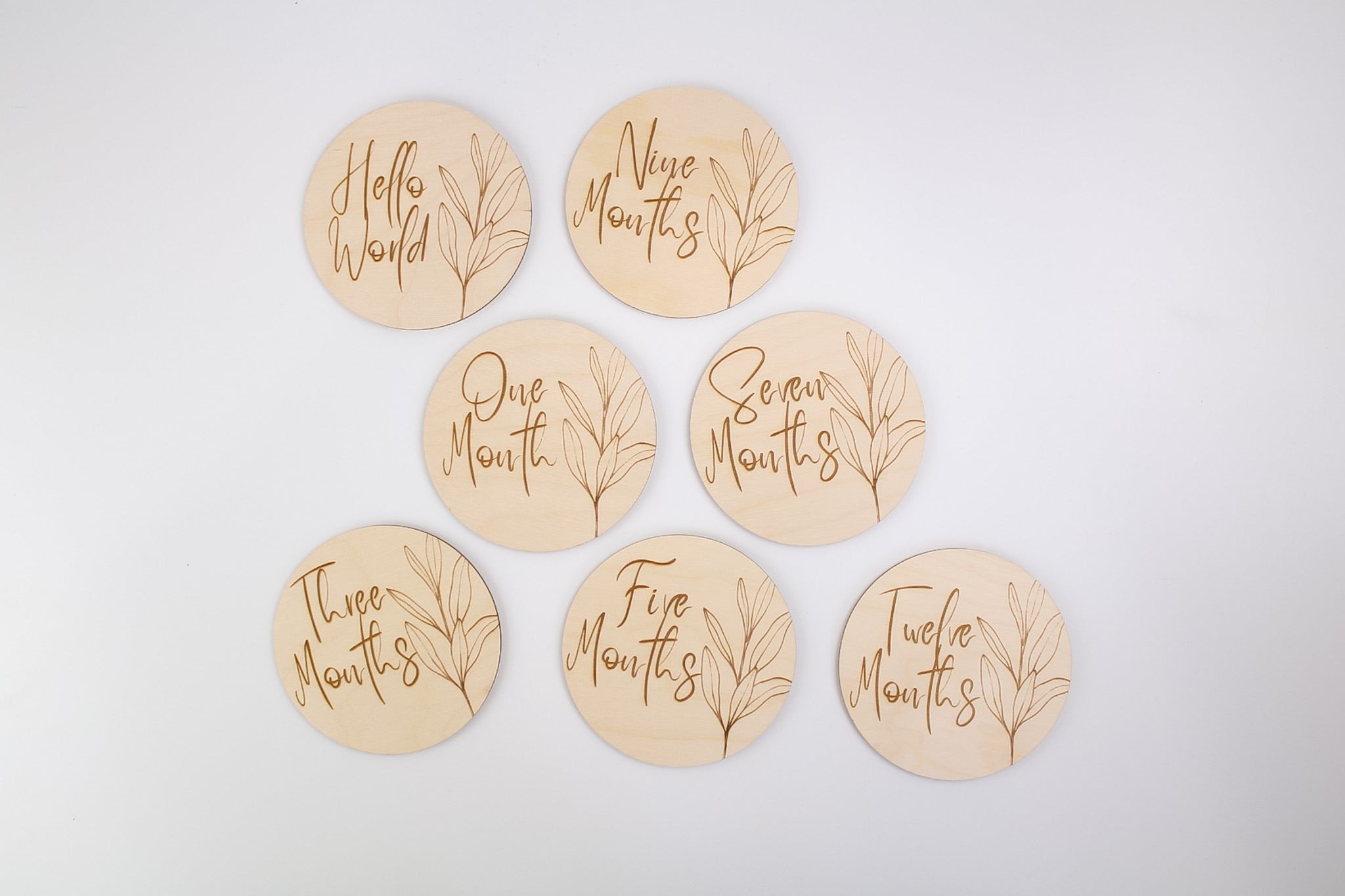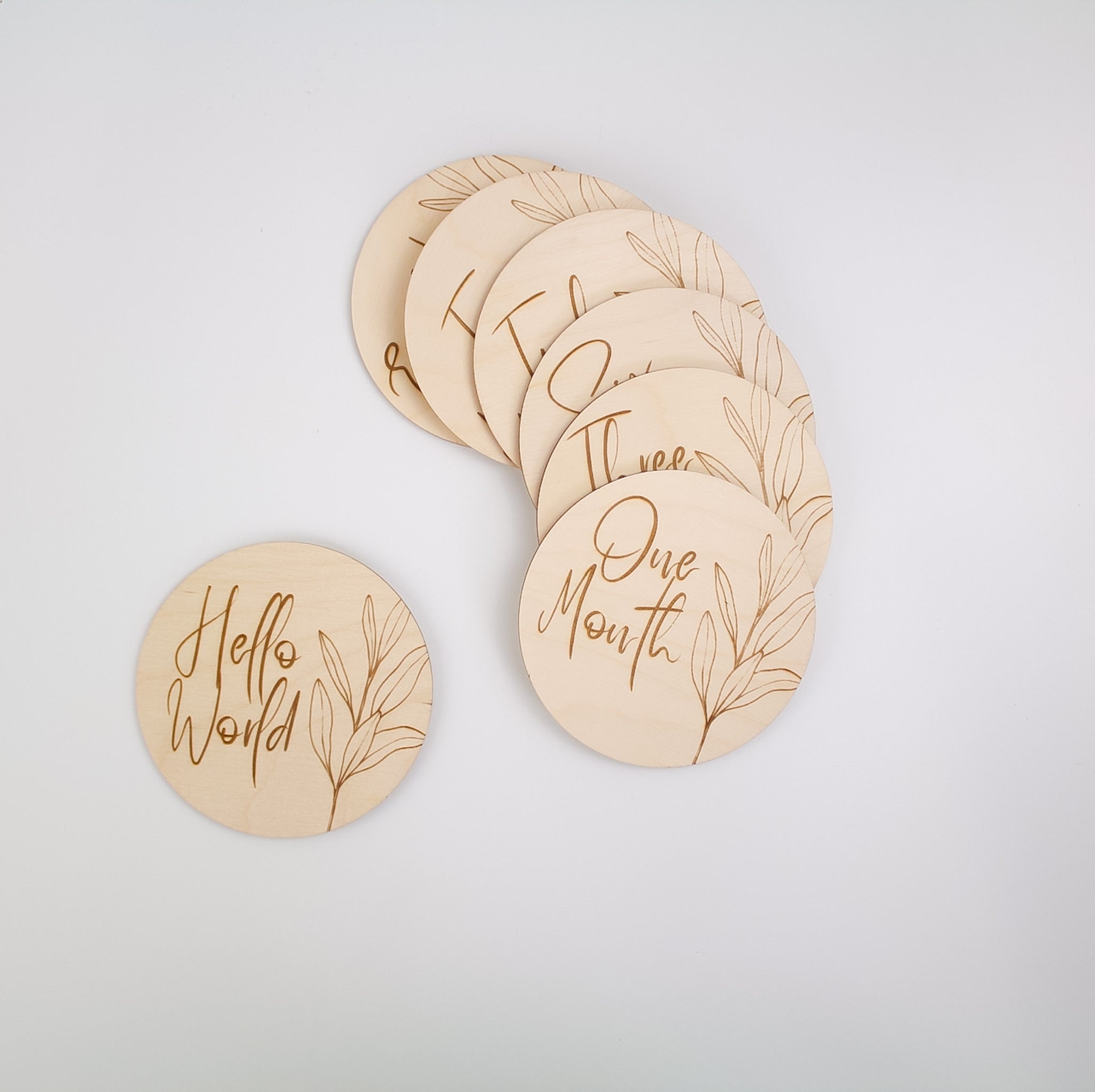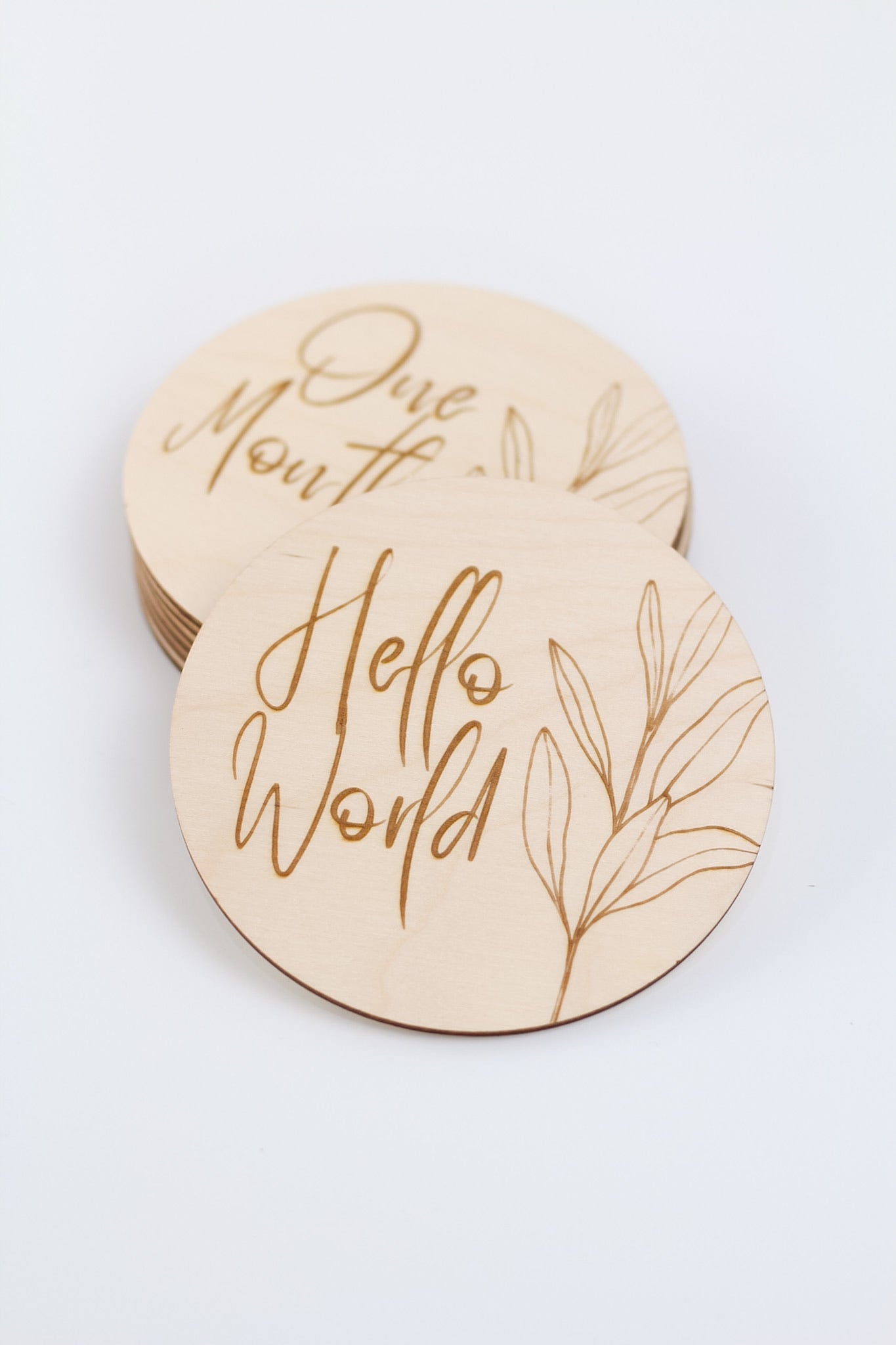 Celebrate every precious moment from "hello world" to 12 months with these lovingly crafted wooden milestone discs. Each disc is thoughtfully designed to beautifully mark your baby's growth, creating lasting memories to treasure forever. Made with care and natural materials, they offer a charming way to capture your little one's first year with warmth and affection.