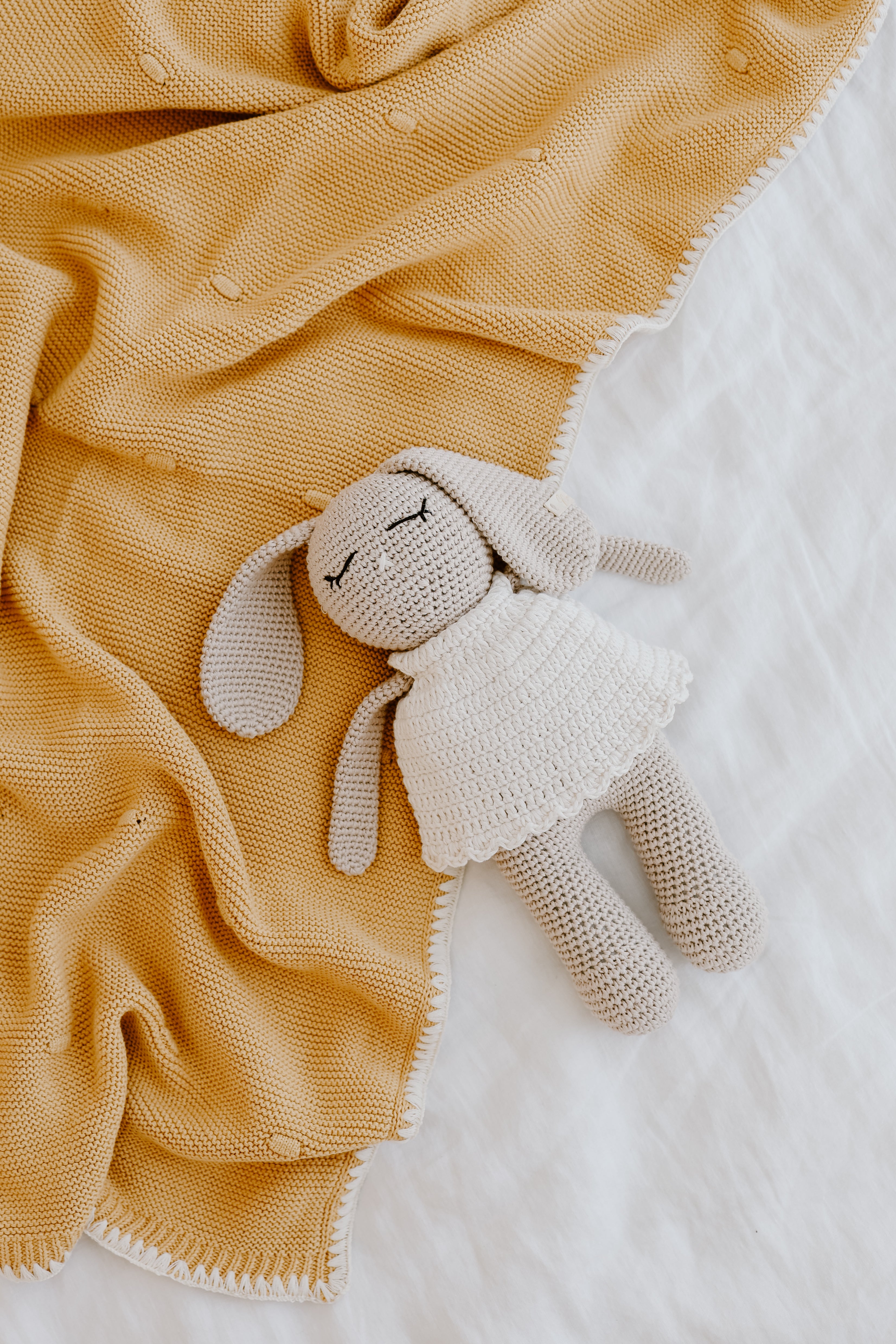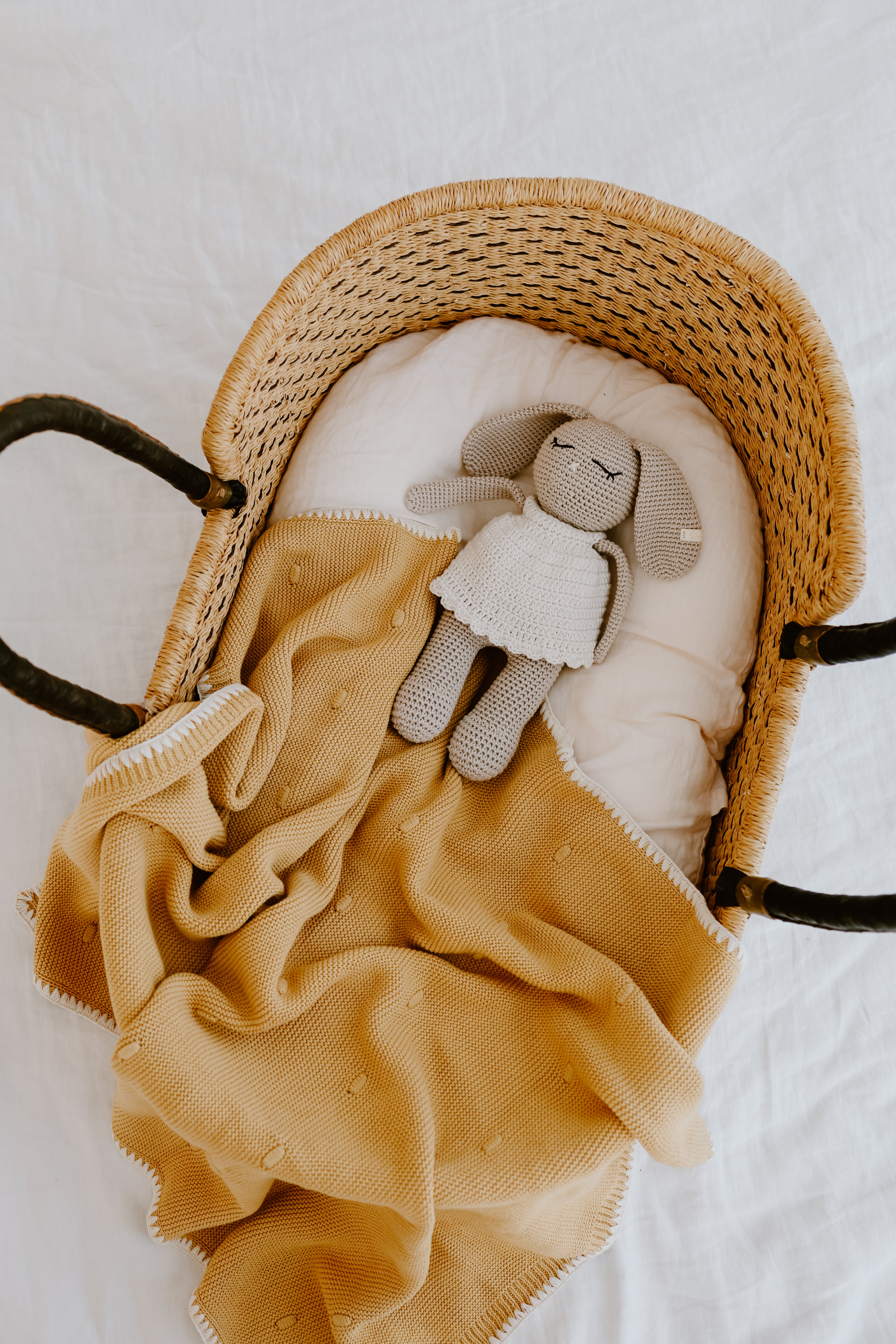 Crafted from 100% cotton, this 70x100cm heirloom blanket in warm mustard is designed to become a treasured keepsake. Soft enough for delicate newborn skin yet durable enough to pass down through generations, it's the perfect gift for families welcoming a new arrival. Its timeless colour and quality construction make it a beautiful addition to any nursery, ready to wrap precious moments and create lasting memories.