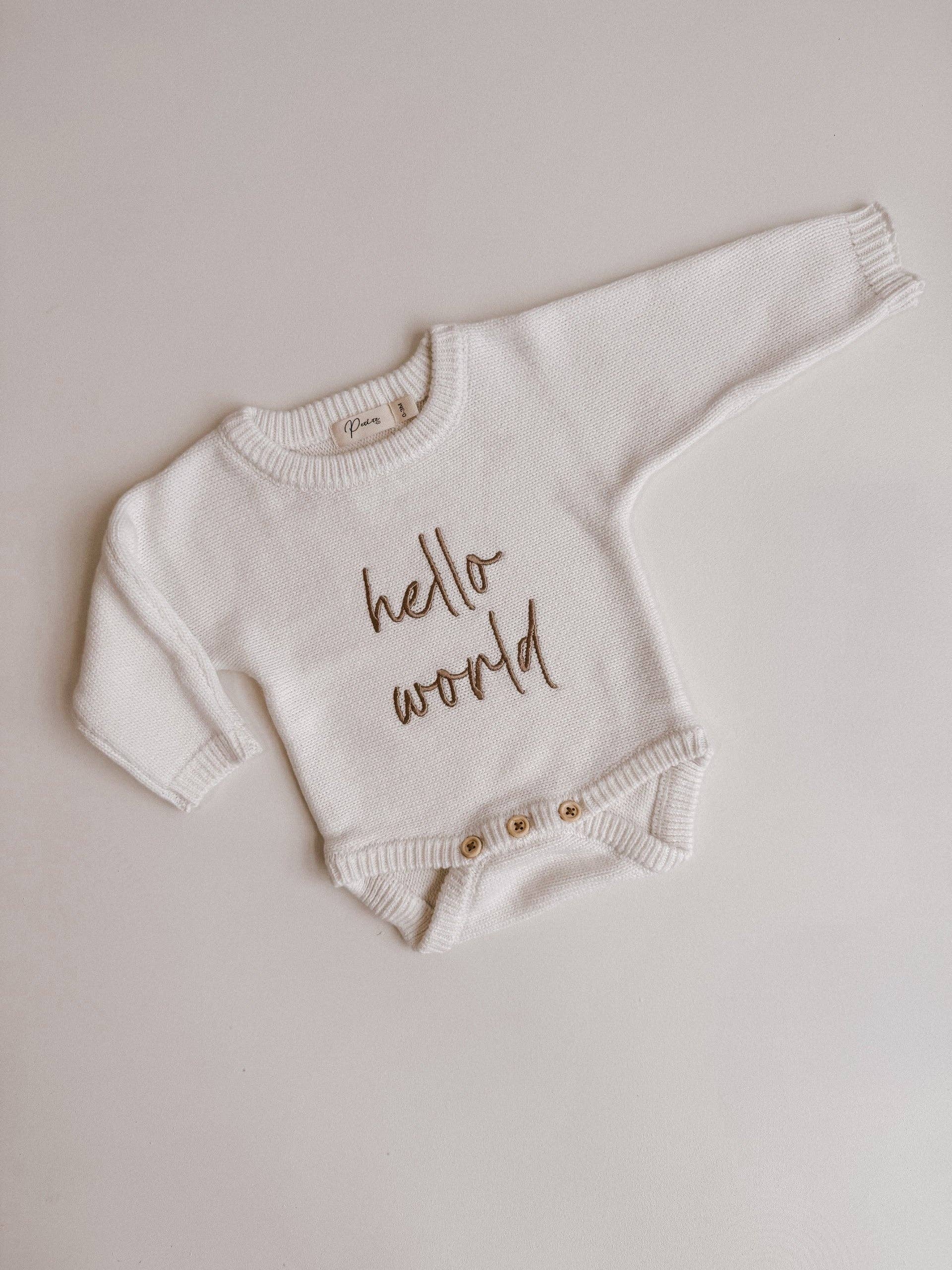 HELLO WORLD - CLASSIC BIRTH ANNOUNCEMENT ROMPER | MILK: 0000 NB