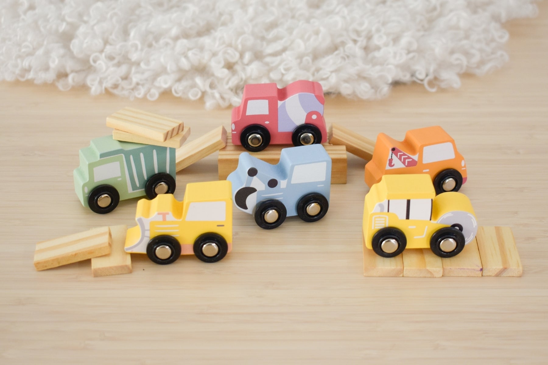 These vehicles are not only great for independent play but also encourage social interaction and cooperation when played with friends or siblings. Kids can work together to create elaborate construction scenes, fostering teamwork skills and cooperation. Additionally, the compatibility of these vehicles with wooden train track sets adds another layer of versatility to playtime, allowing children to create dynamic transportation networks.