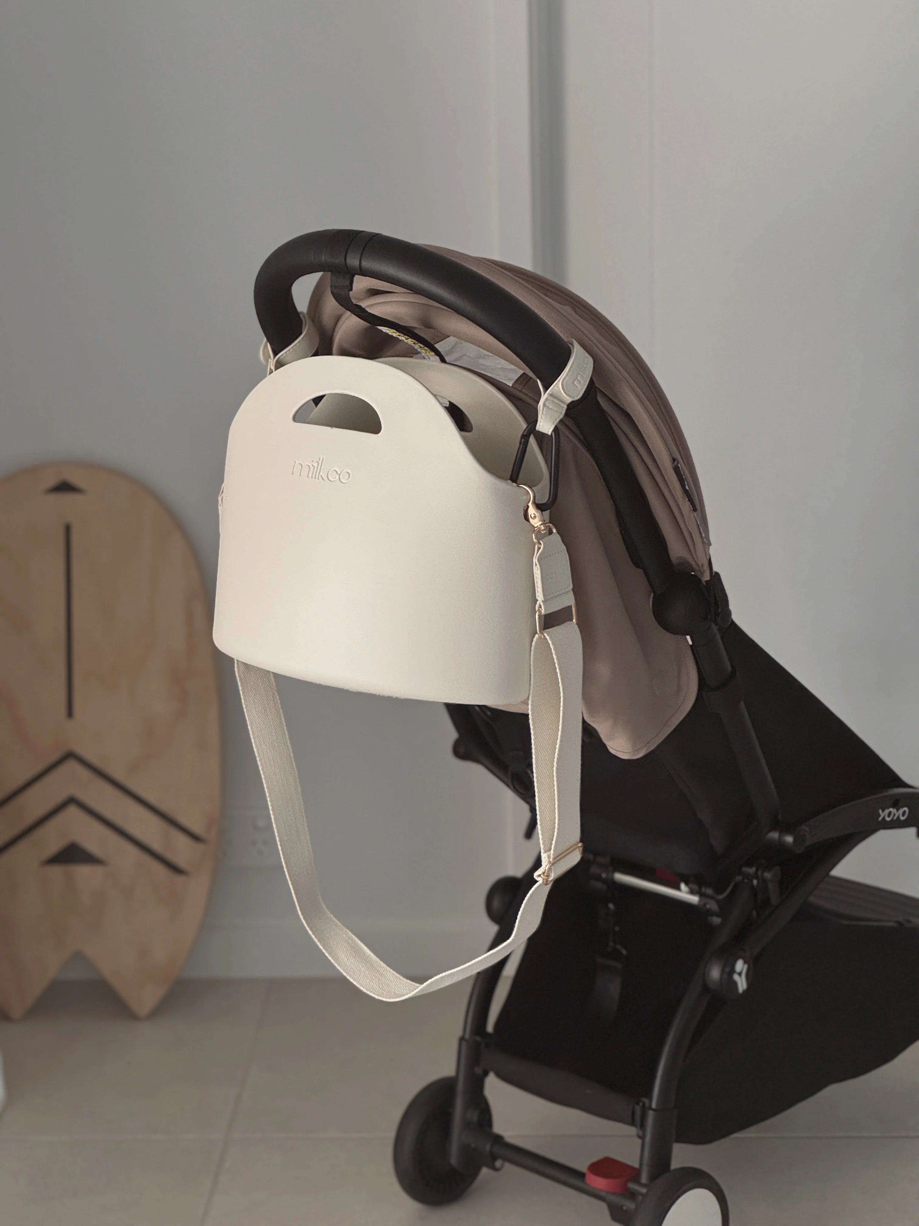 Crafted from high-quality vegan leather and featuring a sturdy matte black aluminium clasp, these hooks are meticulously designed to seamlessly fit any pram handle bar size, elevating any bag into the ultimate pram accessory. Simply wrap, hang, and go!