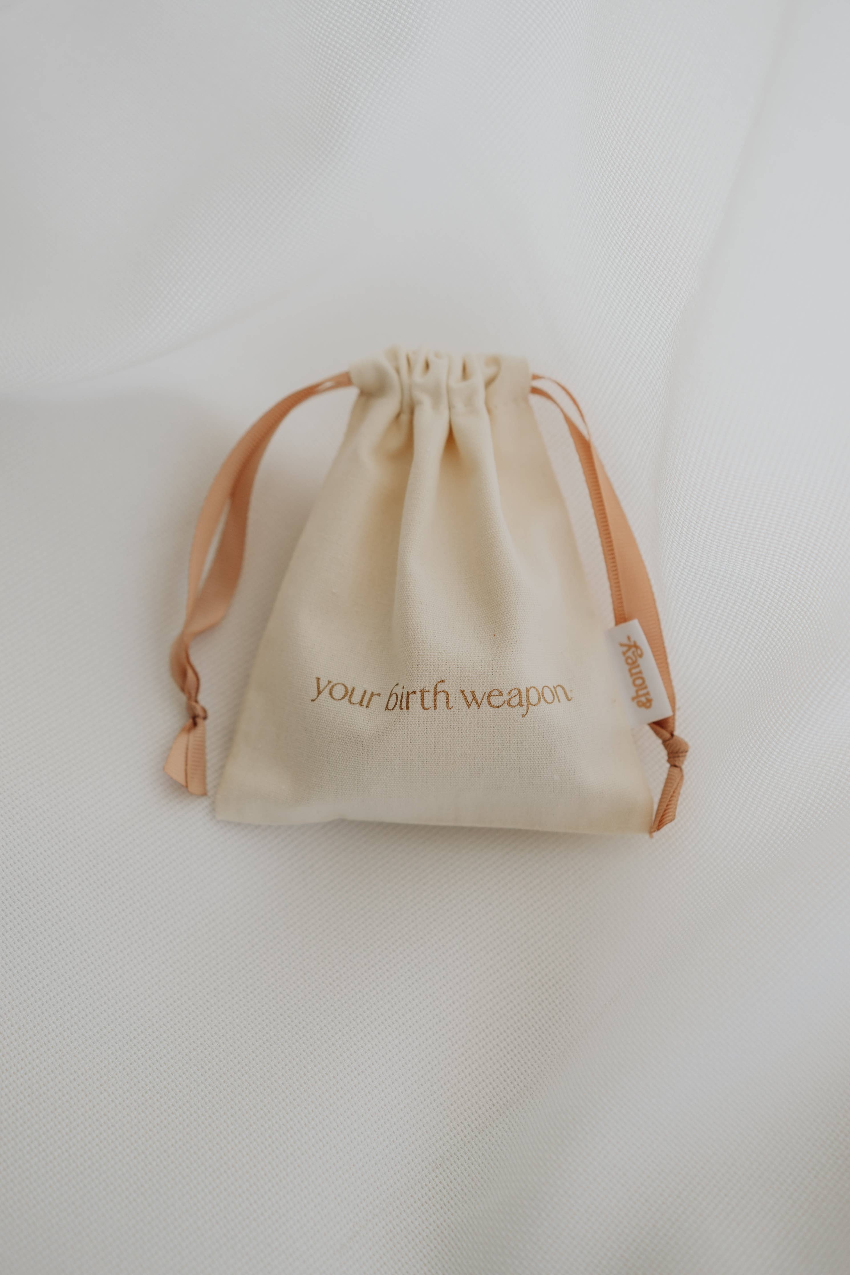 You may have heard of the infamous birth comb for labour pain relief. Your Birth Weapon is the birth comb on steroids. A set of two spikey acupressure, massage balls that you can squeeze in your hands from your first contraction to your last. Why it works?- based on the gateway theory of pain, your brain can only process one message at a time, so by flooding the brain with other sensory stimuli, it is unable to fully process the pain sensations. When gripped in your hands it will trigger acupressure points which can help induce feelings of calm and relieve pain. Not only can Your Birth Weapon be used during labour but you can also use them during pregnancy and postpartum for light massage. Light massage stimulates increased blood flow and relaxation to the targeted area (ie back, jaw etc), similar to a shakti mat! Comes as a set of 2 with their own fabric bag Please note due to the this being a natural product, the wood colour may vary.
